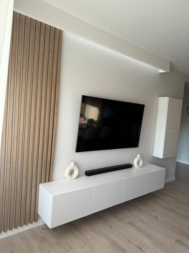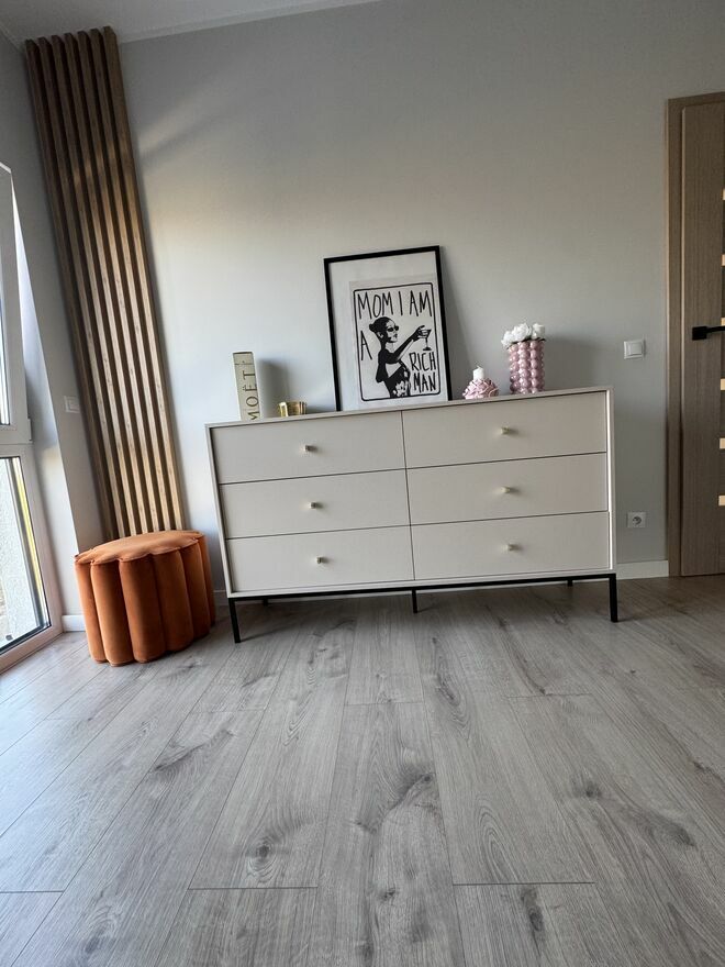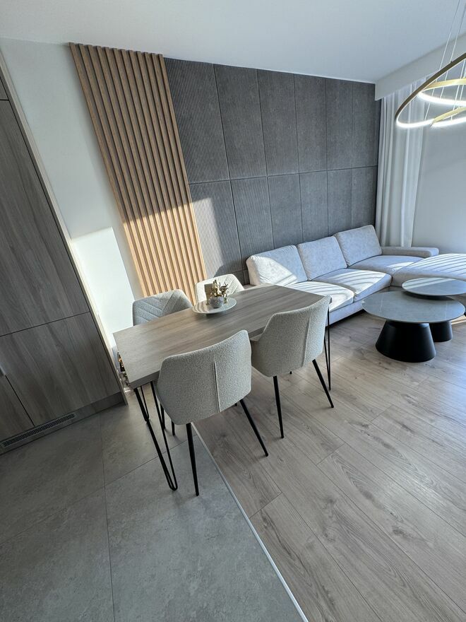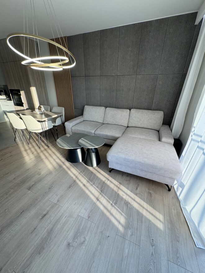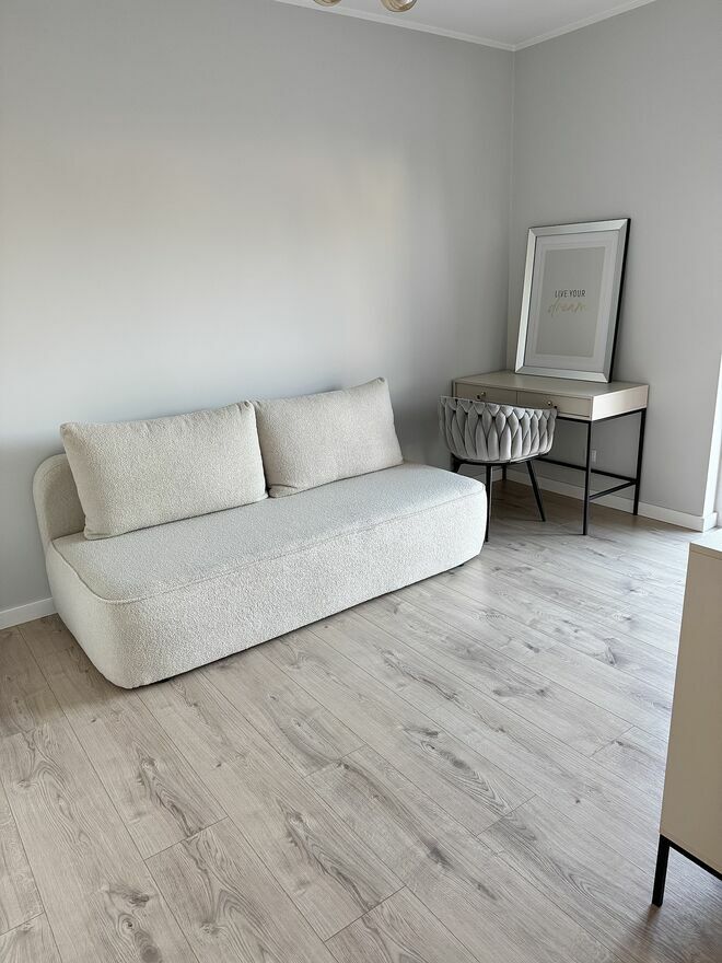 Jasny salon z dużymi oknami, który przez cały dzień jest dobrze doświetlony. Przestrzeń wygodna zarówno do codziennego życia, jak i spotkań z rodziną.
