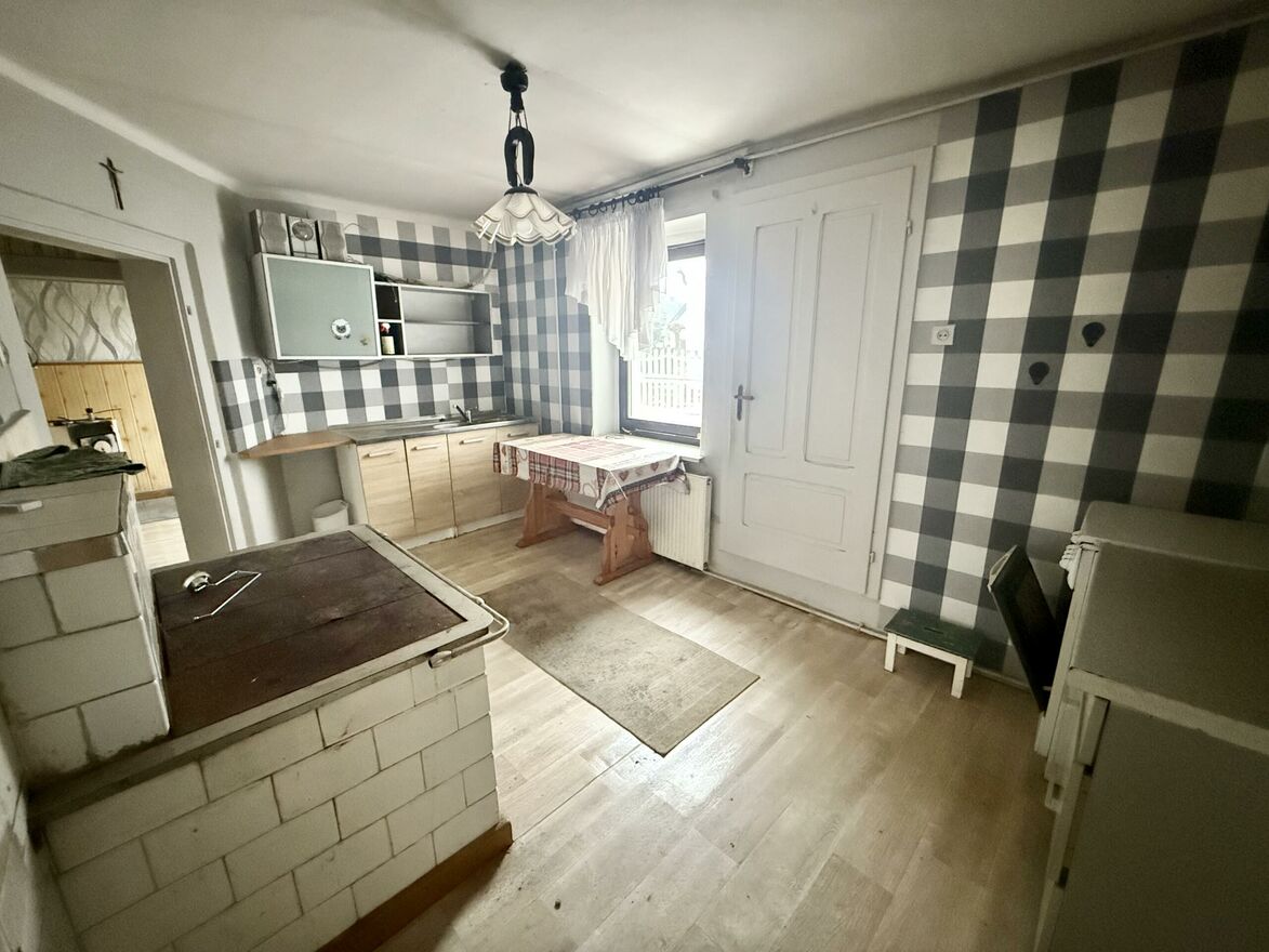 Kuchnia + 3 pokoje, łazienka, pomieszczenie z piecem CO