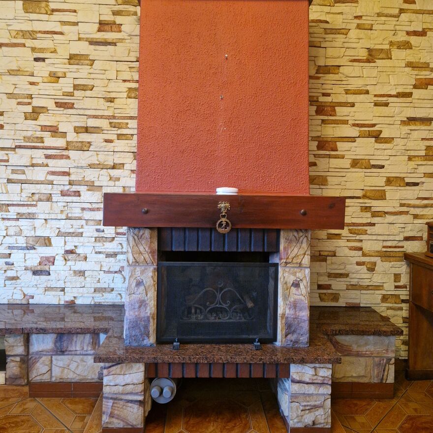 Ogrzewanie - piec na ekogroszek oraz elektryczne. Przepływowe elektryczne ogrzewanie wody. W salonie kominek. W drodze gaz.