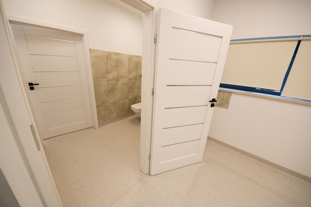 jedna duża poczekalnia,pomieszczenia socjalna,toaleta, pokoje, na