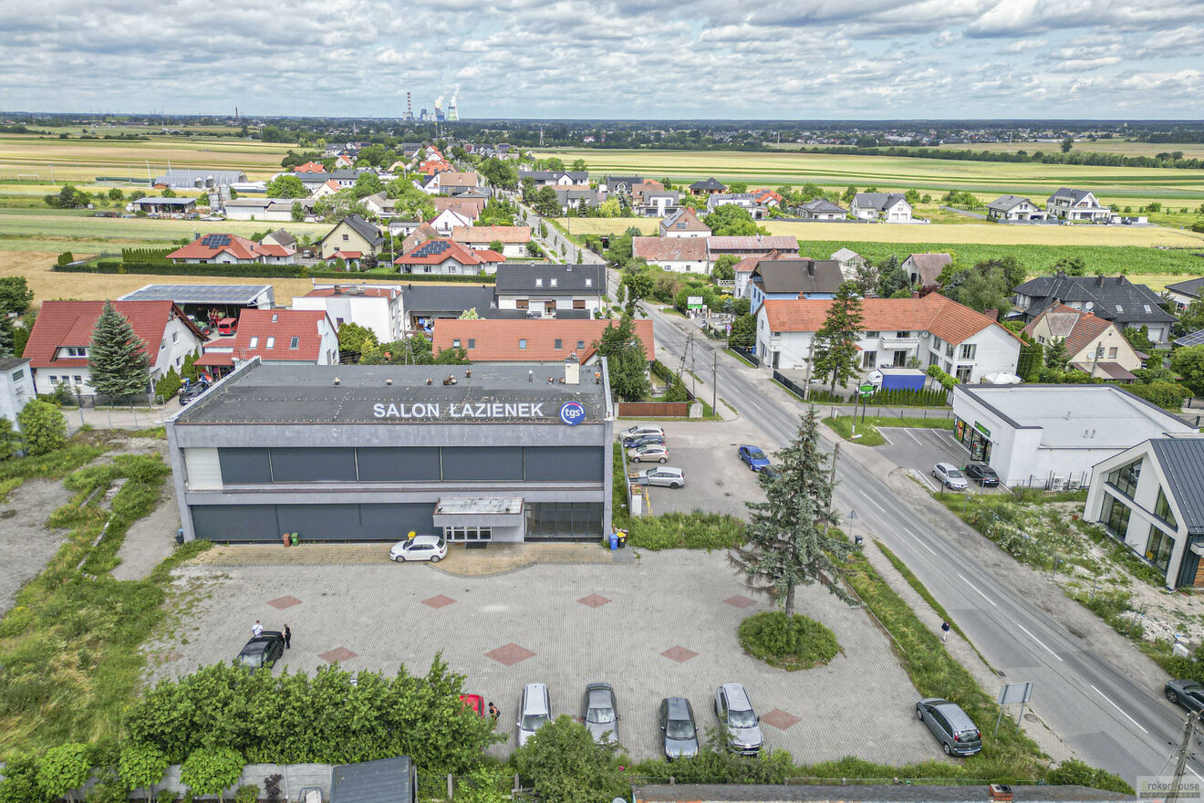 Typ lokalu: powierzchnia handlowo-magazynowa. Teren posiada parking wyłożony kostką brukową (ok. 30 miejsc).
