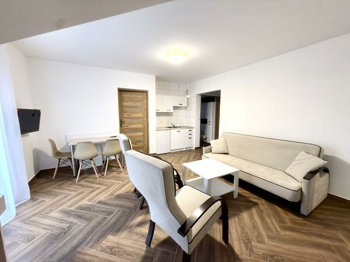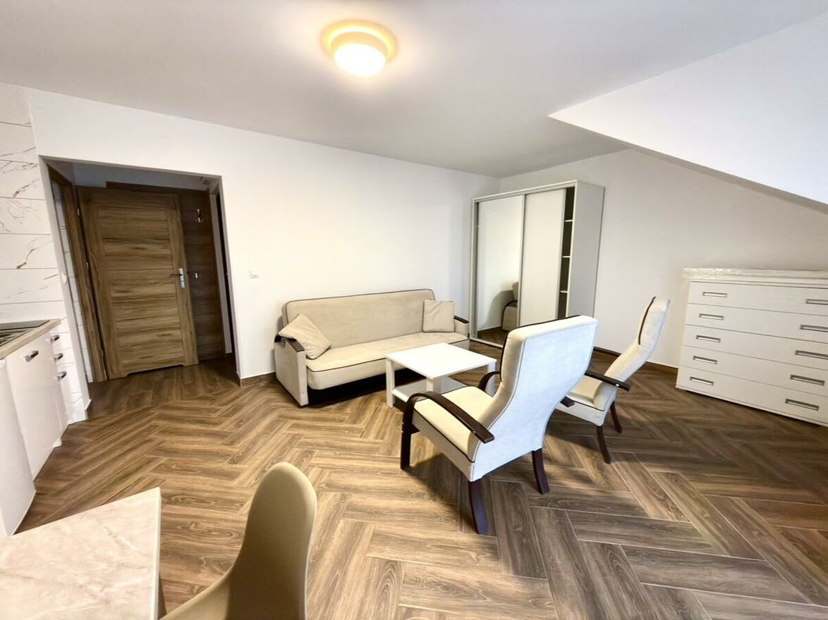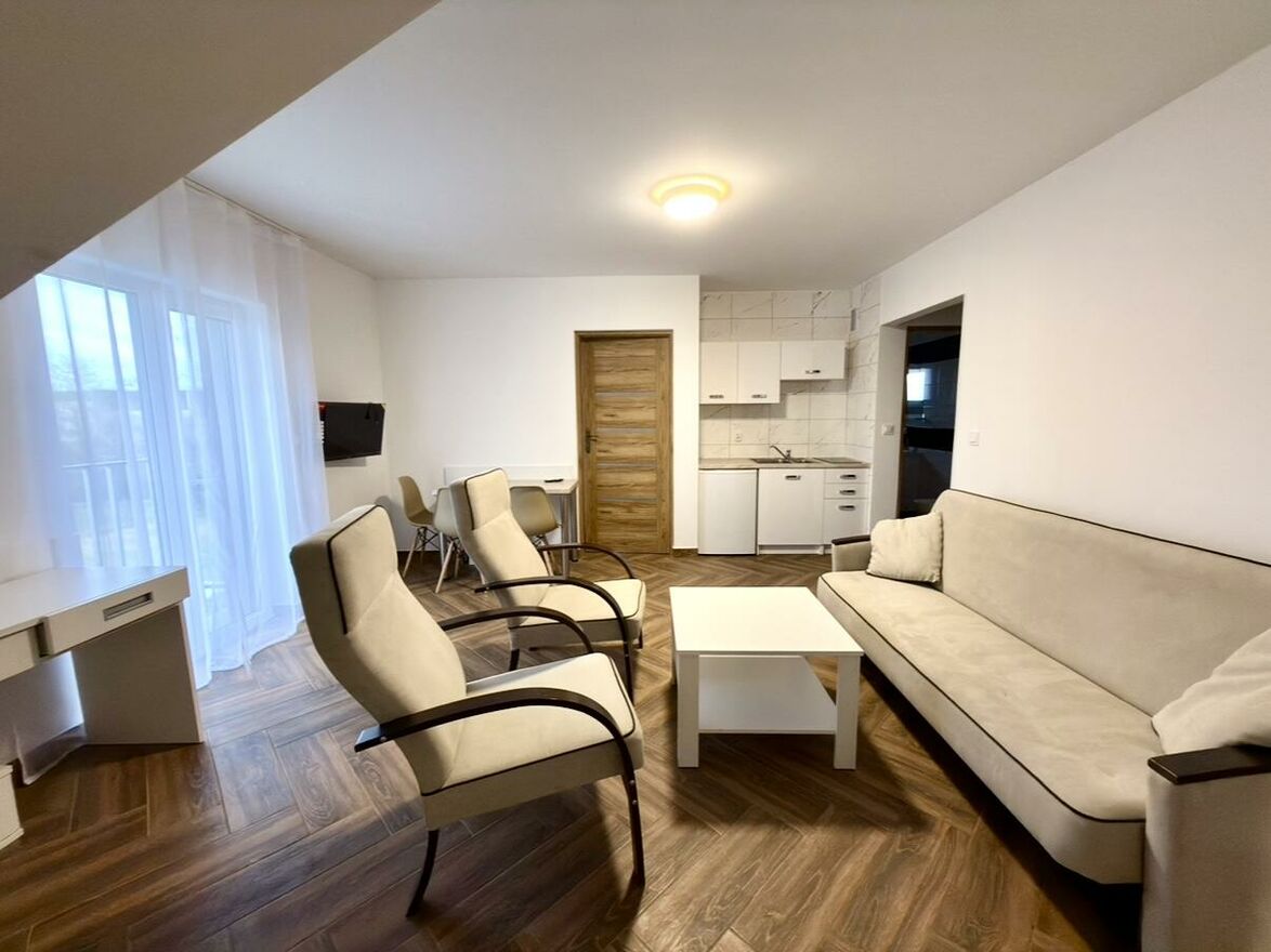 Do wynajęcia 2-pokojowe mieszkanie położone w świetnej lokalizacji, blisko centrum miasta. Lokal znajduje się na 2. piętrze w nowym bloku z 2024 roku i będzie idealnym wyborem dla pary lub jednej osoby szukającej komfortu oraz łatwego dostępu do miejskich udogodnień.Mieszkanie ma funkcjonalny układ - składa się z jasnego salonu połączonego z aneksem kuchennym oraz osobnej sypialni. Lokal jest umeblowany i wyposażony w podstawowe sprzęty RTV/AGD, dzięki czemu nadaje się do zamieszkania od razu.