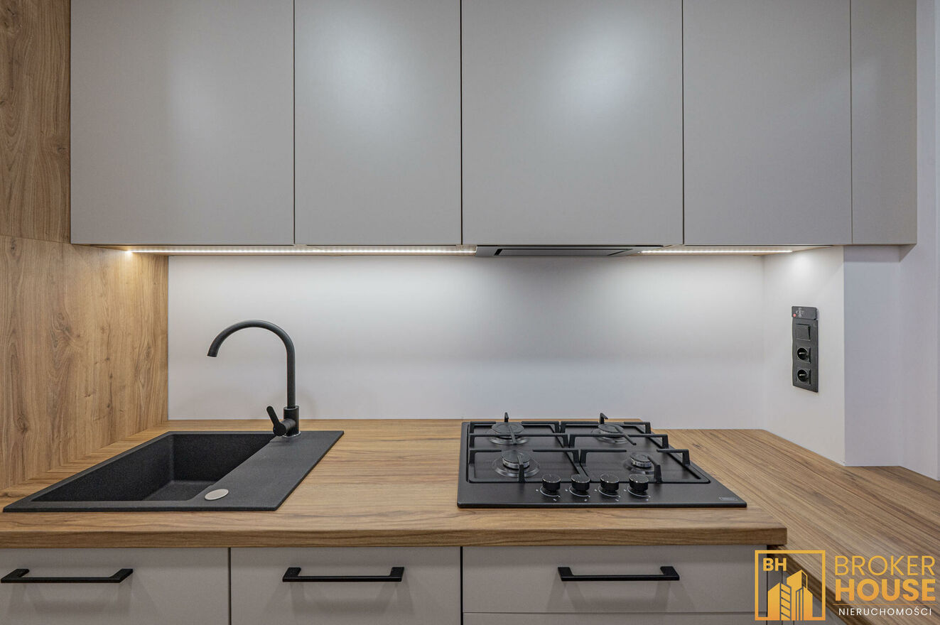 - nowa zabudowa kuchenna robiona na zamówienie z pełnym wyposażeniem AGD, okap kuchenny, płyta gazowa, piekarnik,mikrofalówka,zmywarka.
