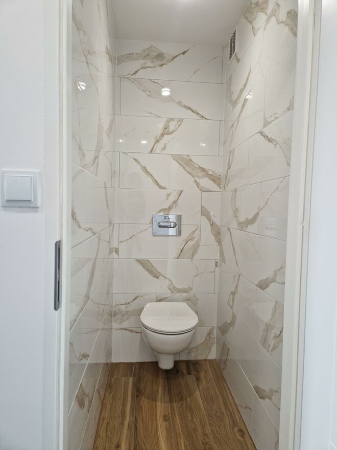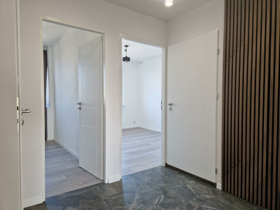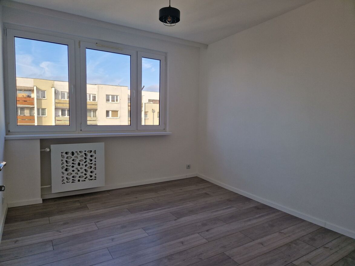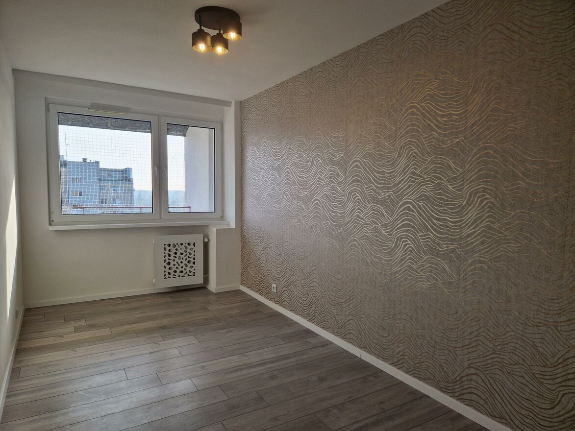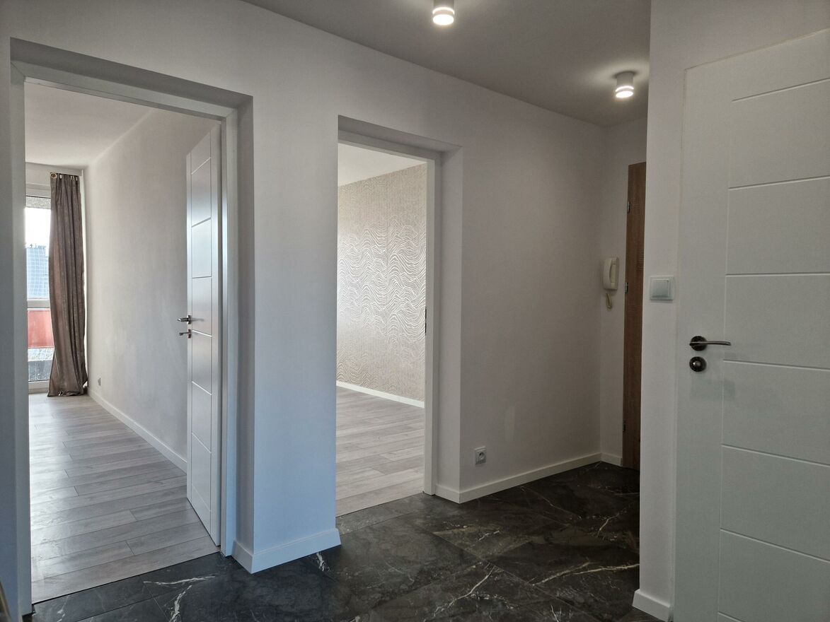 Mieszkanie świeżo po generalnym remoncie w trakcie którego m.in. wymieniono instalację elektryczną, wod-kan, stolarkę drzwiową, położono kafle i panele drewnopodobne, gładzie gipsowe, wyremontowano od podstaw łazienkę oraz toaletę, wykonano na zamówienie zabudowę kuchenną wraz z osprzętem AGD (piekarnik, płyta elektryczna, okap, zmywarka).