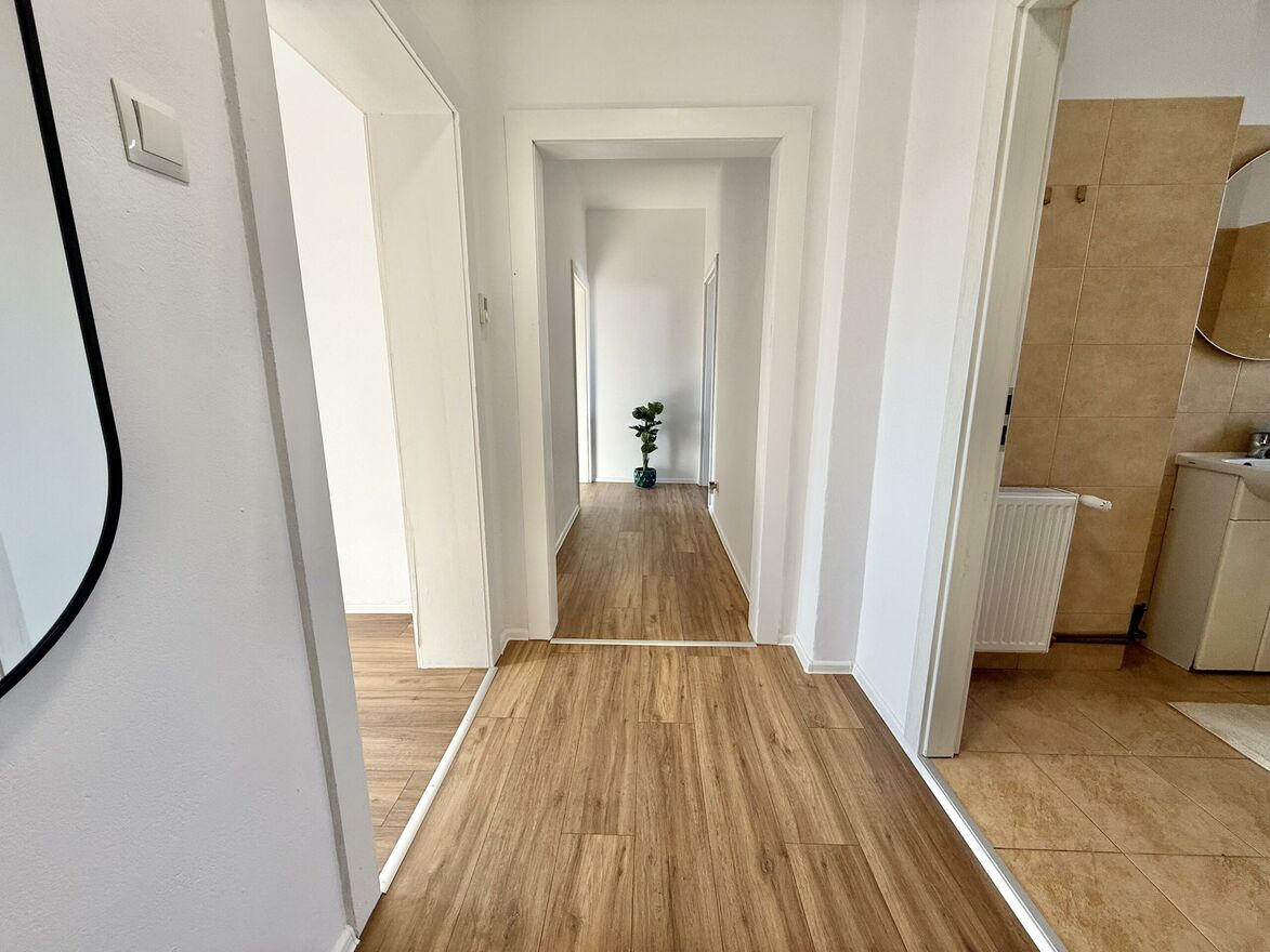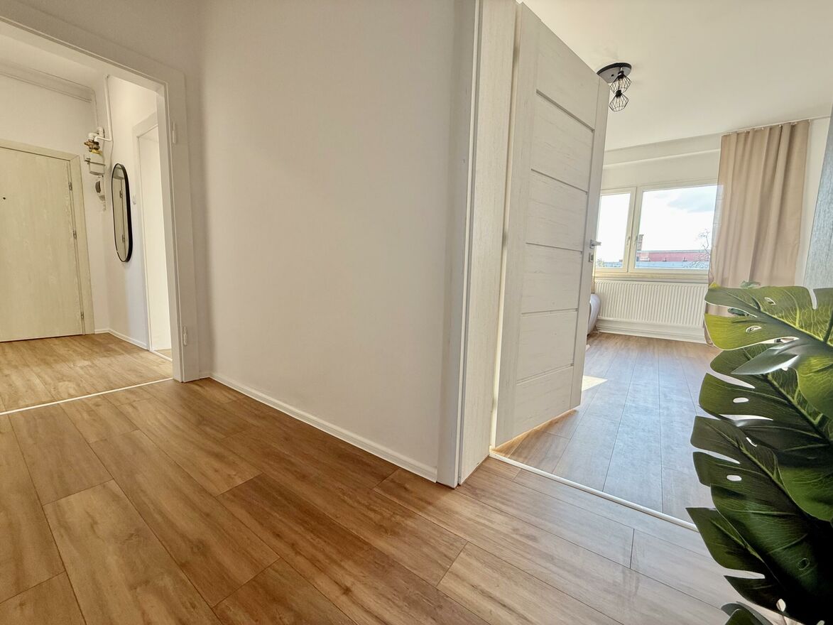 Nowe panele w całym mieszkaniu; wymienione drzwi (DRE) + nowe drzwi wejściowe.