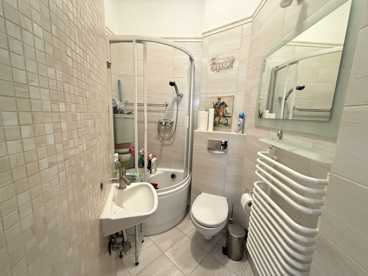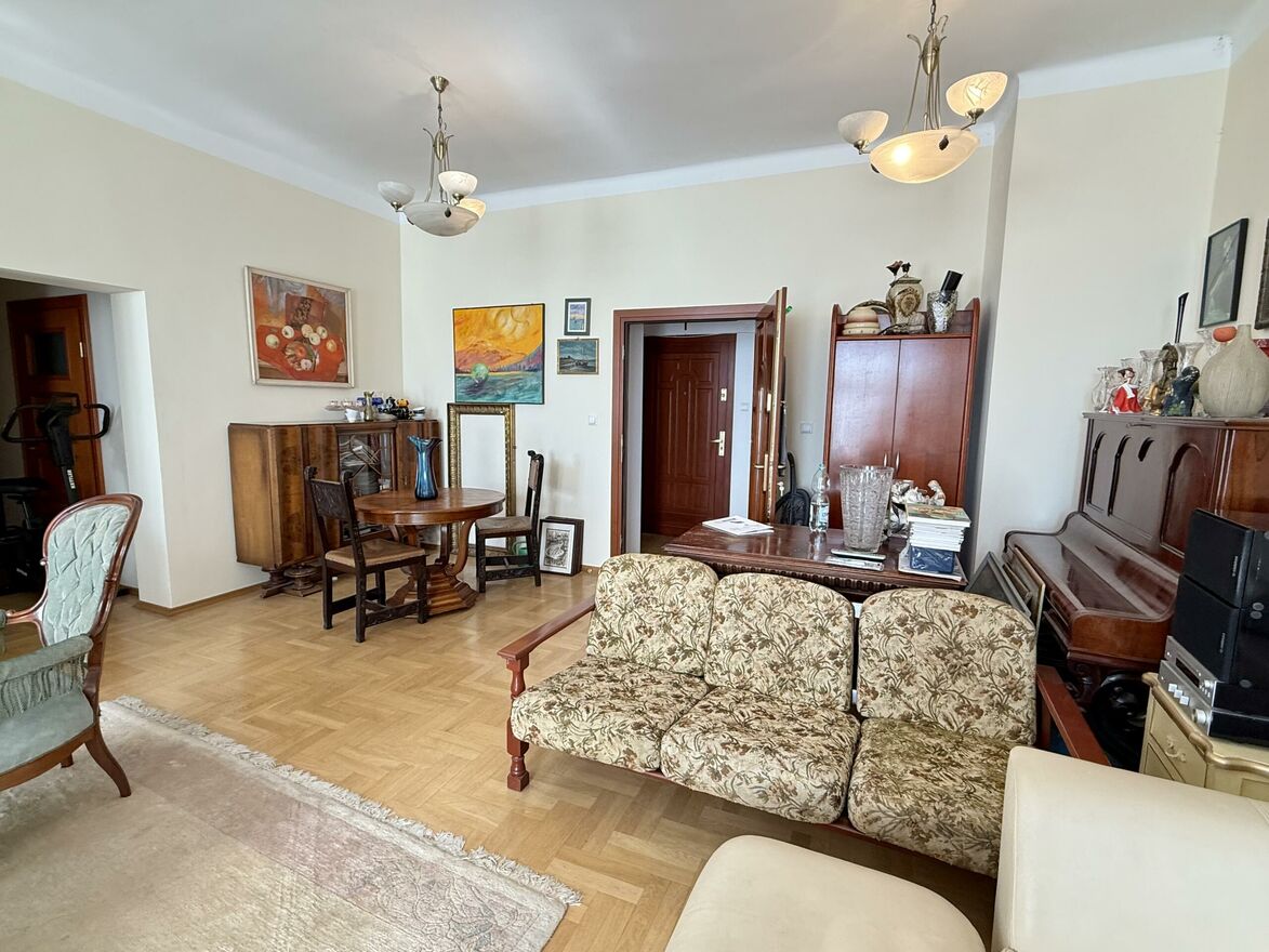 Mieszkanie znajduje się na drugim piętrze zabytkowej kamienicy i zachwyca od pierwszego kroku wysokie sufity (3,05 m), duże, skrzynkowe okna, naturalne światło wpadające przez cały dzień oraz przepiękny, drewniany parkiet - wszystko to sprawia, że wchodząc tutaj, masz wrażenie, jakby czas się zatrzymał.