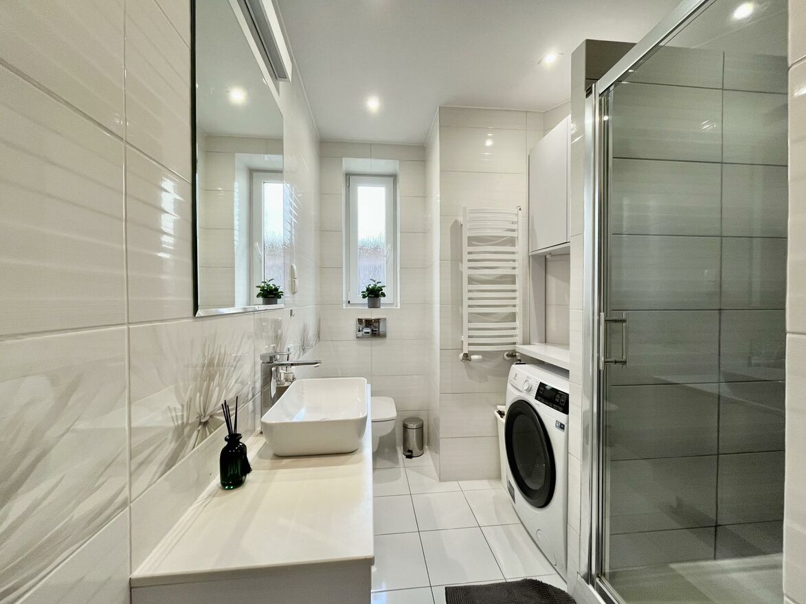 W łazience zastosowano system Geberit, a kuchnia została wykonana przez Rusta, wyposażona w sprzęty Bosch - wszystko w wysokim standardzie i z dbałością o detale.Do mieszkania przynależy piwnica oraz podwójna komórka lokatorska.Dodatkowo, według księgi wieczystej, przynależy pokój na strychu o powierzchni ok. 8 m, który można dowolnie zaadaptować, świetny jako pracownia, gabinet albo mały magazyn.
