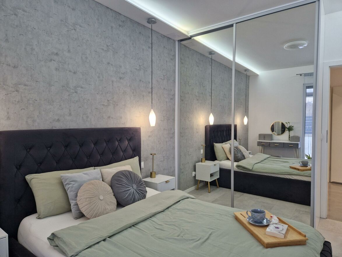 - dwóch sypialni z szafami w stałej zabudowie z lustrami,