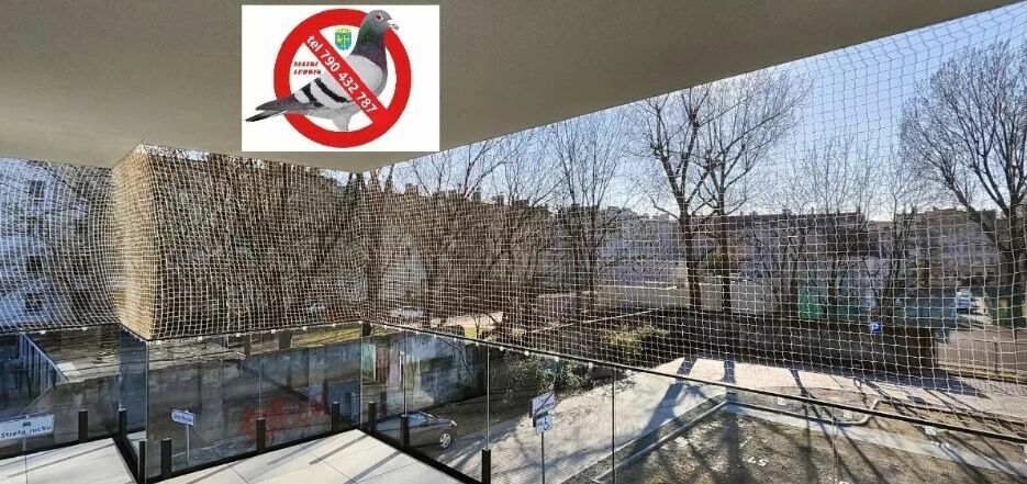 Bezinwazyjny montaż siatki na balkonie, oknie,tarasie, zabezpieczającej przed ptakami, wypadnięciu kota.Czyszczenie po gołębiach