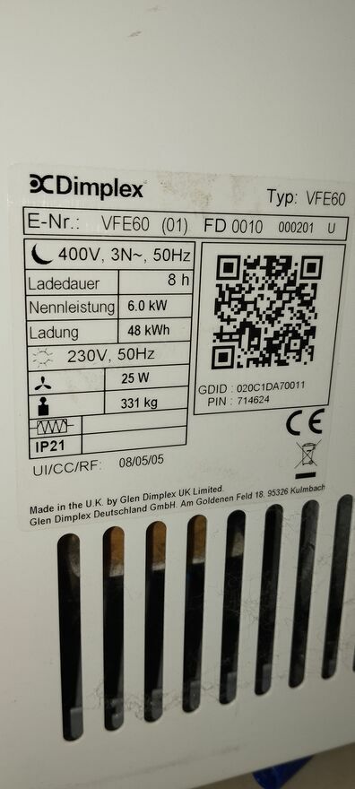 Akumulacyjny piec elektryczny Dimplex typu VFE60. Urządzenie jest używane, ale w b.dobrym stanie technicznym. Piec zapewnia efektywne ogrzewanie pomieszczeń cały parter lub domek letniskowy bez problemu..Posiadam go od nowości spokojnie ogrzewa 100m2 .Piec posiada 300 kg cegły szamotki nagrzewa się i oddaje ciepło przez całą noc jak i dzień .Posiada wyświetlacz LCD dotykowy ,rozpoznaje otwarte okna lub drzwi żeby nie tracić energii i uczy się jaka temperaturę na mieć w danych godzinach .Polecam absolutny super projekt.Na urządzenie daje gwarancję.Idealnu do domków letniskowych jak i domówSprawdź zainteresowanie tym ogłoszeniem