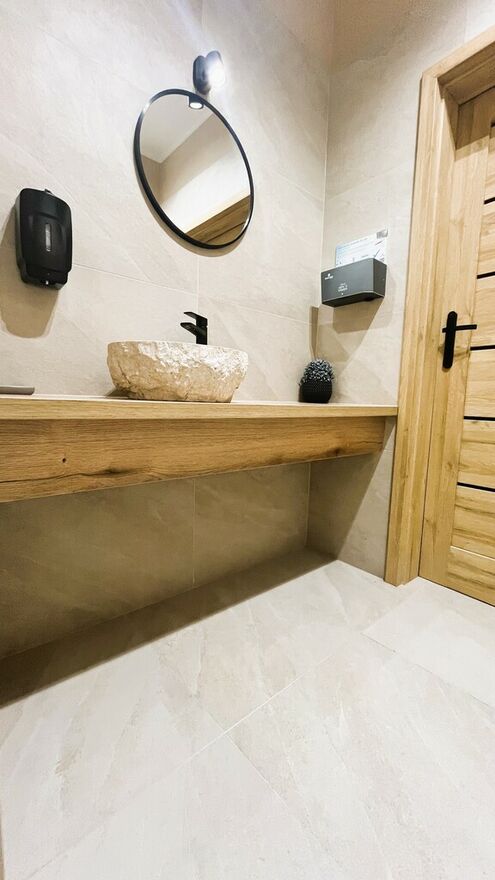 -podłogi : kafle gresowe i drewniane.